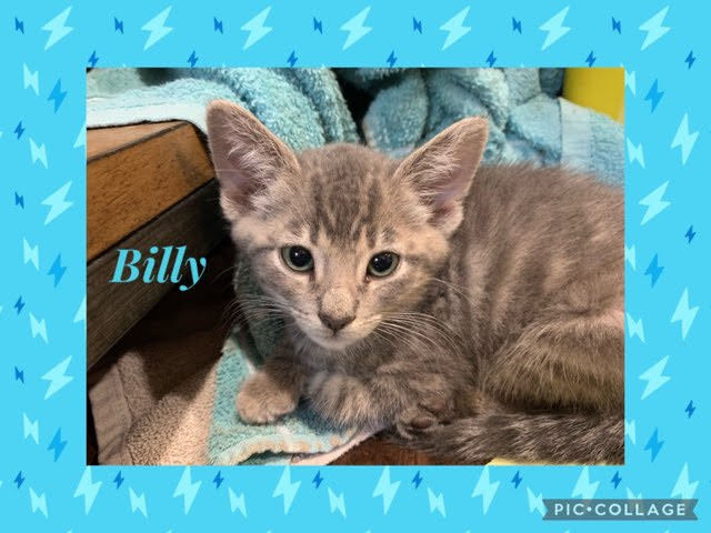 Meet Clyde a very handsome Russian Blue Mix. He was found with his sister Bonnie in a dumpster in a dirty alley. He was extremely emaciated when he was found and one of our bottle baby foster moms brought him back to full health and strength along with his sister. He is a very fun and playful little guy who will run the house as soon as he feels safe and knows it is all his. His favorite toys are just about anything he can get his little paws on.